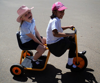 Reception and Year 1 enjoy playing on the trikes and scooters.